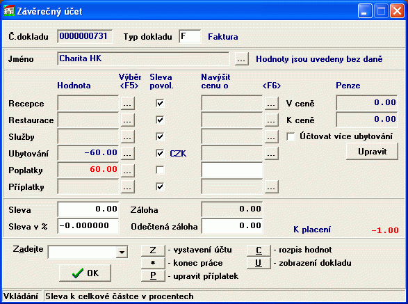 Závěrečný účet v hotelovém systému DeCe HOTEL