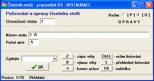 Stoly v software DeCe RESTAURACE